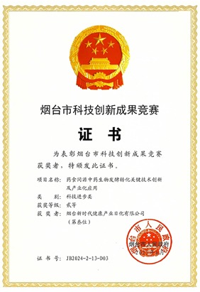 近日,2024年度烟台市科技进步奖评审结果公示,新时代集团所属烟台新时代健康产业有限公司(以下简称“烟台健康公司”)、烟台新时代健康产业日化有限公司(以下简称“烟台日化公司”)与滨州医学院共同申报的项目《药食同源中药生物发酵转化关键技术创新及产业化应用》,成功获评为2024年度烟台市科技进步奖二等奖。