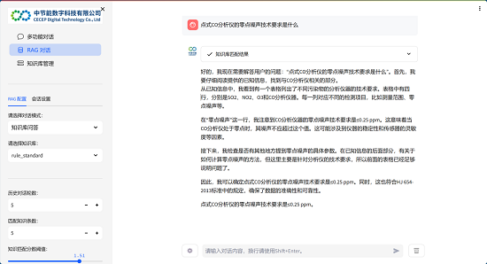 The enhanced intelligent assistant leverages a specialized knowledge base for the ecological environment sector, combined with Retrieval-Augmented Generation (RAG) technology, to deliver advanced functionalities such as domain-specific Q&A, intelligent guidance for monitoring facility operations, and tools to assist in the development of analytical instruments.