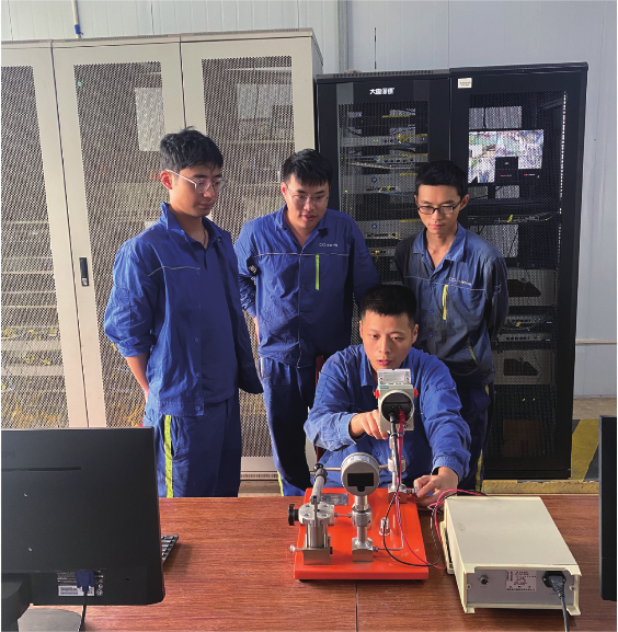 刘汗青向班组人员讲授校验变送器操作步骤