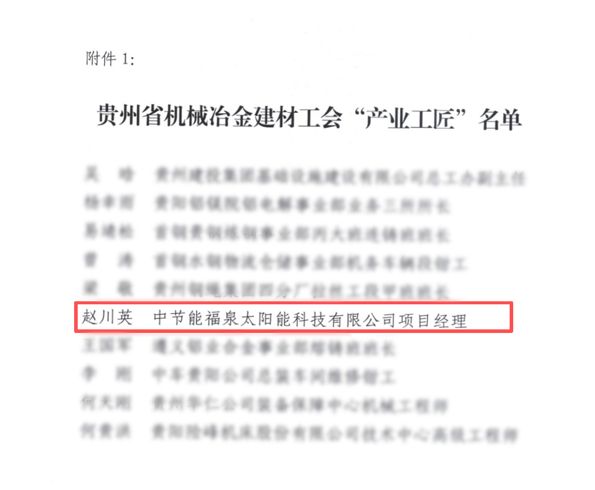 太阳能公司赵川英荣获贵州省机械冶金建材工会“产业工匠”称号 |