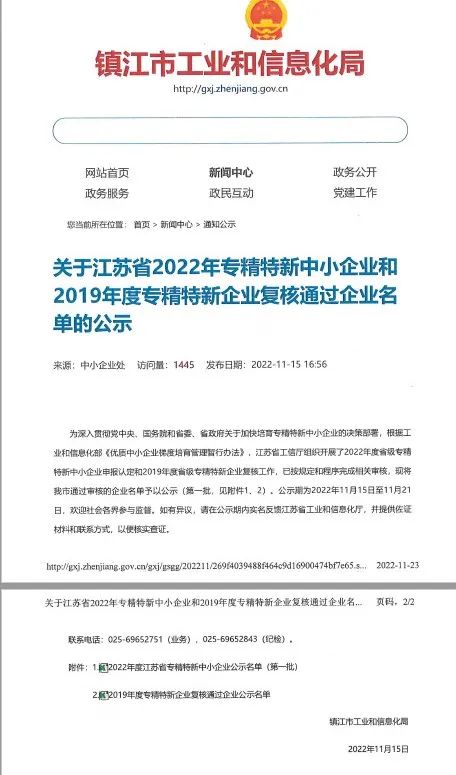 近期,镇江市工业和信息化局发布了《关于江苏省2022年专精特新中小企业和2019年度专精特新企业复审通过企业名单的公示》,太阳能镇江公司成功入选江苏省2022年度省级专精特新中小企业名单。