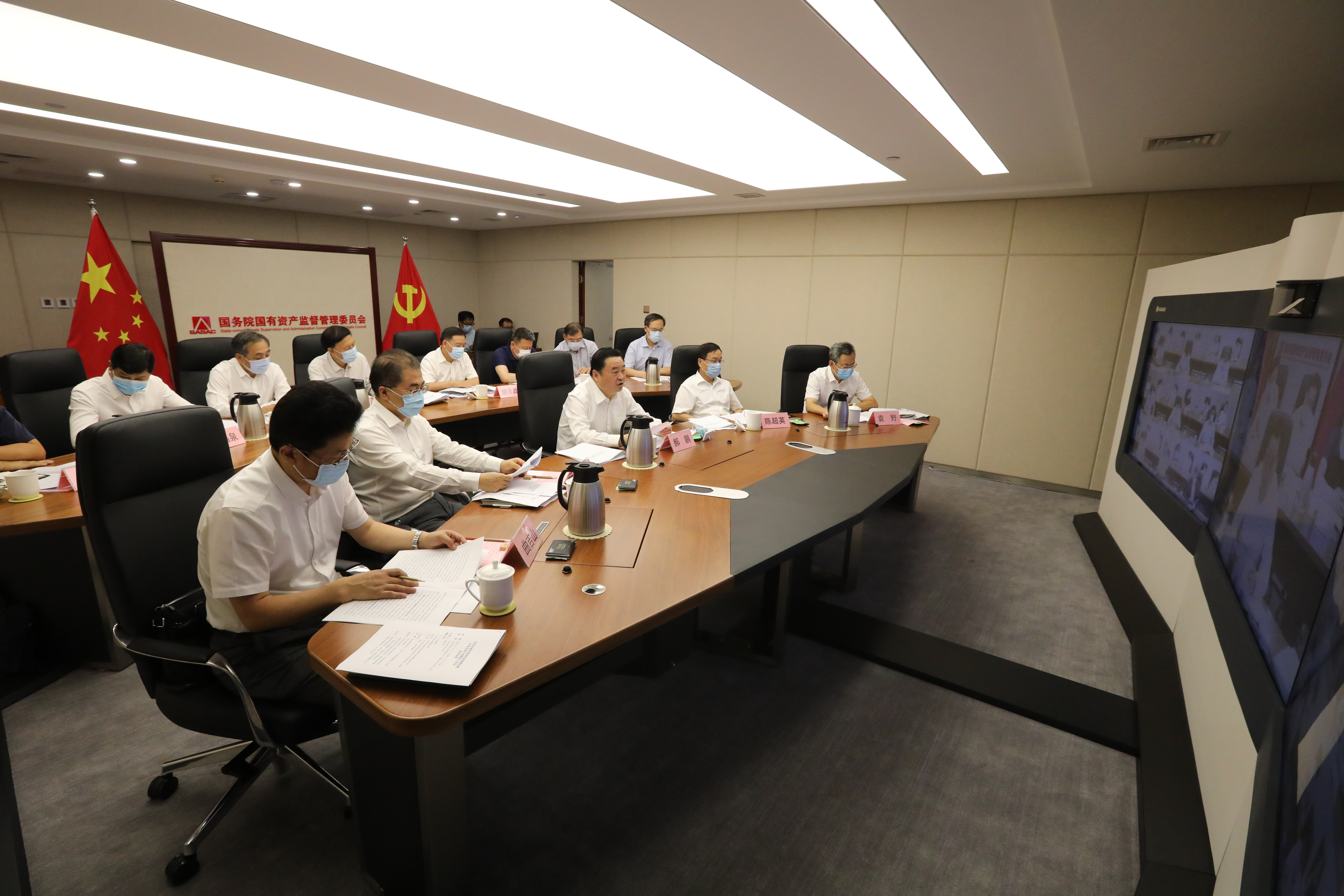 会议以视频会议形式举行。国家电网、中国华能、国家能源集团、南航集团、国投、华润集团、中粮集团等7家中央企业主要负责同志通过视频会议系统作了交流发言。