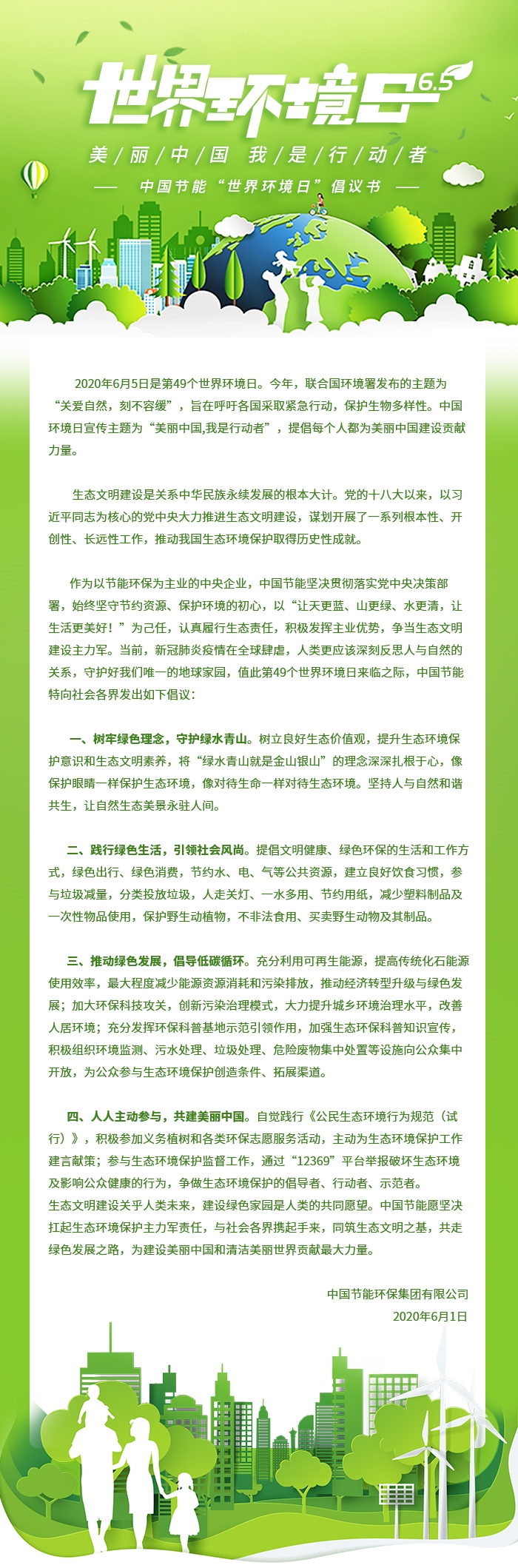 美丽中国,我是行动者 ——中国节能“世界环境日”倡议书