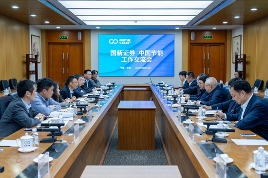 廖家生对张海文一行的到访表示热烈欢迎,并介绍了中国节能总体情况。他指出,中国节能作为一家以节能环保为主业的中央企业,始终践行习近平生态文明思想,深耕节能环保行业,与国新证劵有很好的合作基础和广阔的合作空间。中国节能希望与国新证券在绿色金融、ESG咨询、企业并购重组、资产证券化等方面进一步加强合作,共同推动节能环保事业发展,为美丽中国建设作出新的贡献。 张海文对中国节能的热情接待表示衷心感谢,并介绍了国新证券的发展历程和业务布局等情况。他表示,国新证券作为中国国新控股的券商,积极融入国家战略部署和国有资本运营全局,切实服务国资央企高质量发展。国新证券期待与中国节能在股权融资、债券融资、资产证券化、资产重组等方面深化合作,不断加大产融结合力度,共同打造央企间合作典范。 国新证券市场研究部、ESG事业部、董事会办公室、投银部、债券融资部、国新国证投资等单位负责人;集团公司财务部、合作部、资运部、研究中心等单位负责人参加会见。