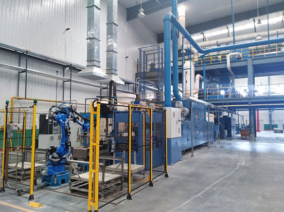 ▲机械手收板(骆驼新疆蓄电池) 该项目是集团公司聚焦“双碳”目标与产业升级需求启动的重点攻关项目,是为铅酸蓄电池生产企业提供绿色节能生产车间的设计及关键核心装备制造。项目团队通过工艺流程再造,构建起“绿色工艺+智能装备+数字管控”的全链条创新体系,从源头减少铅消耗和三废排放,减少工人数量,提高了单位面积产出比,提高了生产效率,系统性破解了传统铅蓄电池生产中铅耗高、污染重、效率低的行业痛点,最终实现铅酸蓄电池的绿色生产。 目前,该项目研发的工艺技术和设备已在骆驼股份、风帆股份、超威集团、天能股份、理士国际等知名铅酸蓄电池生产企业成功应用,使企业的生产效率大幅提升,人工成本、生产能耗和物耗大幅降低,铅、酸污染物排放指标优于国家标准,资源和能源消耗指标、污染物控制指标均优于国家清洁生产一级基准值,经济效益、环境效益和社会效益显著。