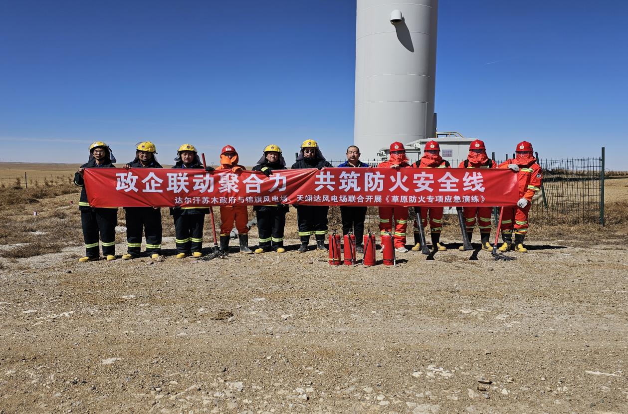 部分风电场运用“人工+无人机+在线监测”三位一体巡检模式,高效完成对风机桨叶、集电线路、变电站设备等重点区域、设备进行“地毯式”排查。同时,动态优化交易申报方案,拓展消纳渠道,全面加强电力交易与生产调度协同,抢抓春季发电黄金期,保障绿电高效消纳。 应急演练常态化 筑牢安全压舱石