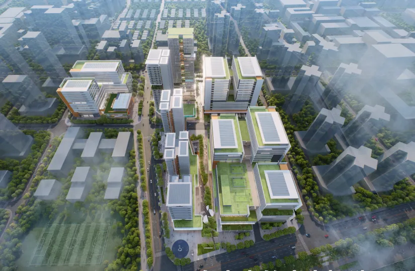 该项目位于深圳市宝安区沙井街道,总用地面积约8.1万平方米,规划建筑面积34.4万平方米,涵盖研发用房、无污染厂房、配套宿舍及公共服务设施。