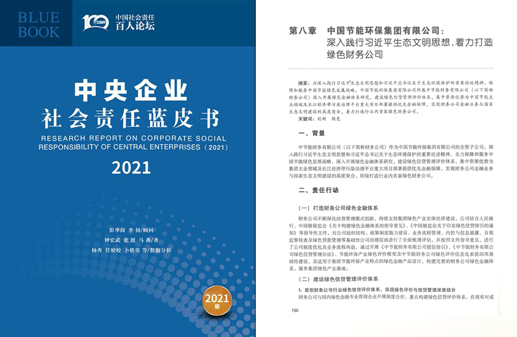 财务公司深入践行习近平生态文明思想着力打造绿色财务公司案例,入选国资委《中央企业社会责任蓝皮书(2021)》 |
