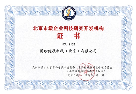 本次获评“北京市级企业科技研究开发机构”是北京市科技主管部门对该公司创新能力的高度认可,也是对其未来持续创新发展的激励与支持,有利于促进该公司竞争实力的提升。国珍健康科技公司通过持续高研发投入,跟踪行业内最新的发展动态,积极研究市场的新产品、新技术的发展需求,充分发挥企业科技研究开发机构在服务企业创新、支撑产业发展中的重要作用,不断增强公司产品市场竞争力和健康服务可持续发展的能力。