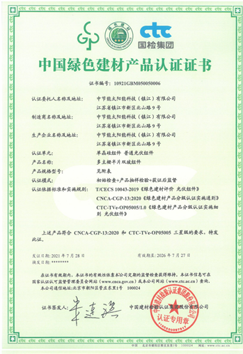 太阳能镇江公司荣获首批中国绿色建材产品三星认证 |