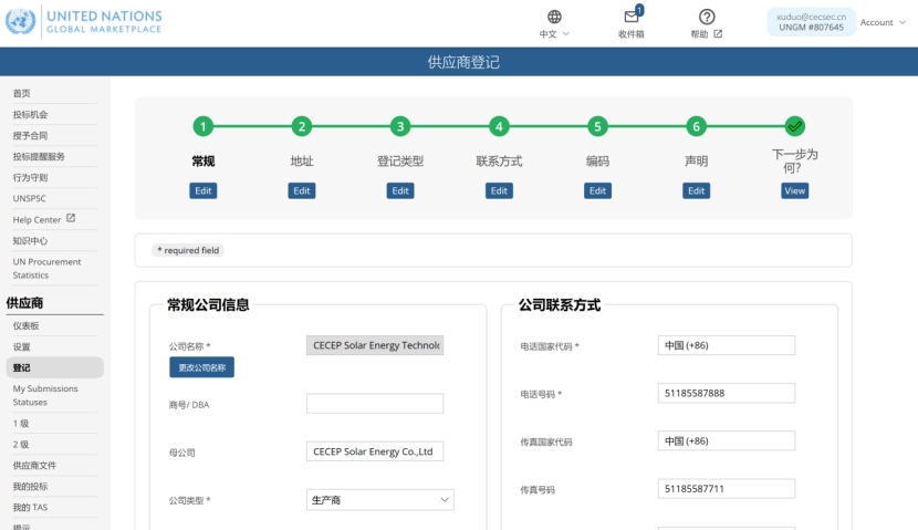 近日,太阳能镇江公司成功注册为联合国采购一级供应商,可参加世界贸易组织、联合国项目事务署、贸易中心、亚行等联合国22个组织机构的招投标。此次成为联合国采购供应商,是企业自身软实力、影响力的体现,为增加企业知名度、拓展国际市场奠定了坚实基础。