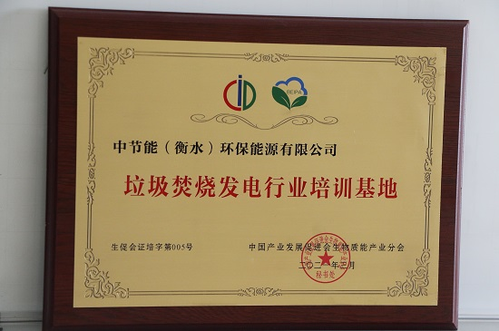 2021年4月20日,中国环保衡水公司荣获中国产业发展促进会颁发的首批“垃圾焚烧发电行业培训基地”荣誉称号。