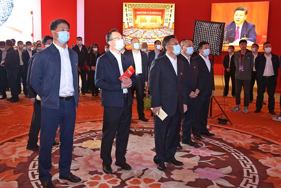 大家共同参观了室外展区、序厅、中央综合展区、地方展区、展望展区的6000多项展览要素,在一件件实物模型、一段段生动视频、一幅幅图片图表中感受党和国家发展进程中这极不寻常、极不平凡的10年。集团公司位于江苏省东台市的“风光渔”互补产业基地、甘肃省酒泉市风光电基地项目和参与制作的大气环境质量改善展示平台亮相展览,令观展人员倍感振奋和自豪,大家纷纷感叹,集团公司近年来取得发展和成绩,根本在于以习近平同志为核心的党中央的坚强领导,在于习近平新时代中国特色社会主义思想的科学指引。