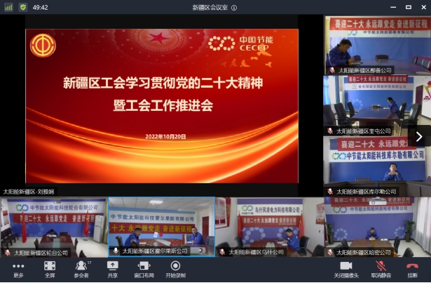 太阳能西中区、新疆区为深入学习宣传贯彻党的二十大精神,近日,各基层工会召开学习贯彻党的二十大精神暨工会工作推进会,集中学习党的二十大报告,就学习贯彻好党的二十大精神提出工作要求,并对下一阶段工会工作进行安排部署,在广大干部职工中掀起学习讨论热潮。各级基层工会主席、委员参加会议。