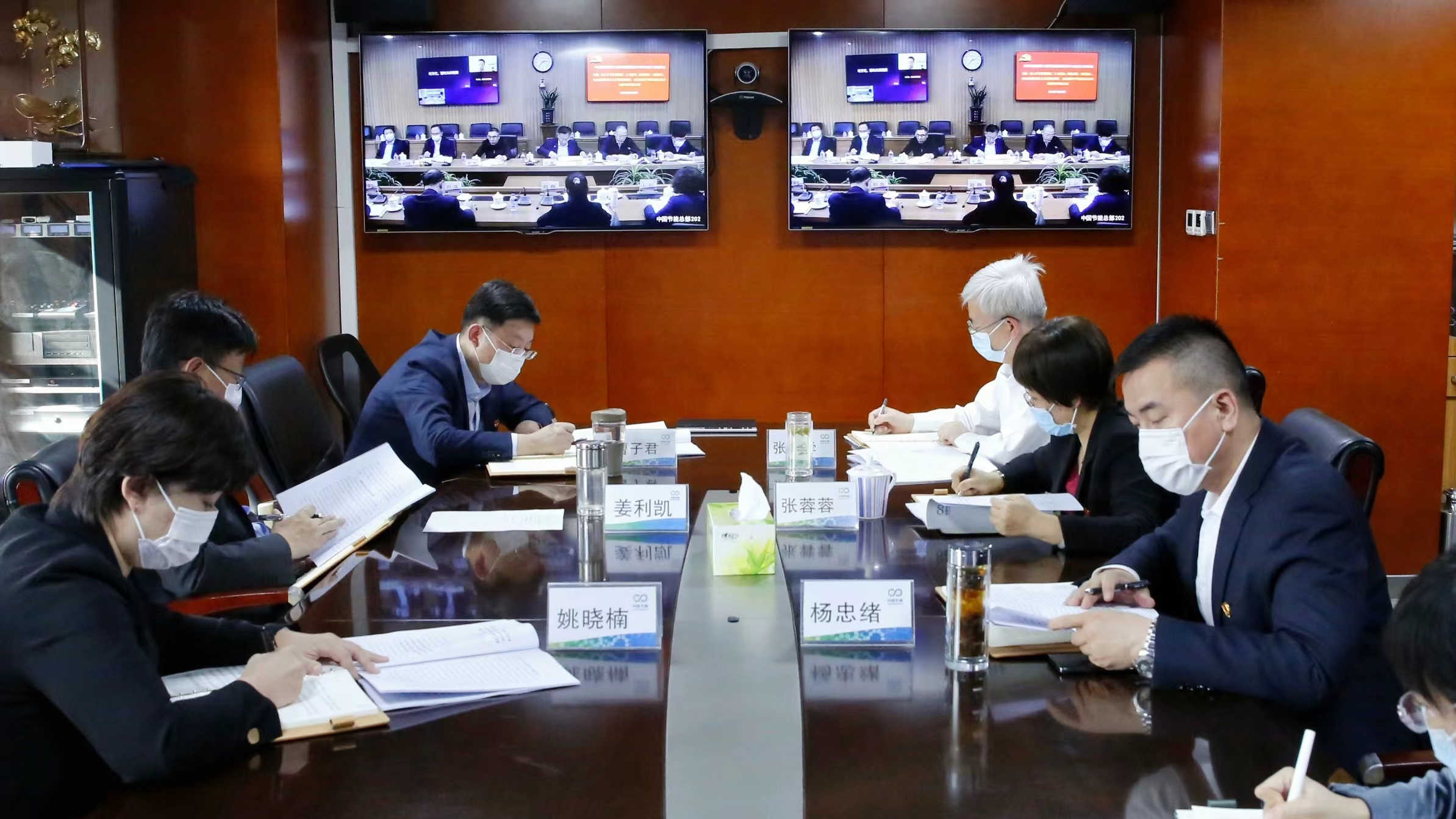 公司党委提前谋划部署,强化组织领导,为大会精神的学习宣贯奠定良好基础。在组织全体党员干部集中收听收看大会开幕式盛况基础上,10月17日,公司召开2022年三季度经营分析会,组织公司本部中层以上党员干部、各大区子公司班子成员集体学习党的二十大工作报告,公司党委书记董事长在讲话中强调,各级党组织和党员干部要原原本本、学深悟透报告精神,牢记大会主题和报告中向全党同志提出的“三个务必”号召,深刻认识新时代十年来经历具有重大现实意义和深远历史意义的“三件大事”,全面了解十年来党同人民一道拼出来、干出来、奋斗出来的“十六项成就”,深刻理解新时代新征程中国共产党以中国式现代化全面推进中华民族伟大复兴的使命任务,坚定不移践行职责使命,切实用党的二十大精神武装头脑,指导工作。10月24日,公司党委理论学习中心组参加集团公司党委第二次联学会,围绕“深入学习贯彻党的二十大精神,踔厉奋发,勇毅前行,为全面建设社会主义现代化强国、全面推进中华民族伟大复兴贡献中国节能力量”进行集中研讨。中心组成员一致认为要肩负起实现碳达峰碳中和目标的历史使命,锚定“三新两保一推进”目标,持续深化科技创新成果,加快企业数智化建设,推动公司高质量发展,在新时代能源革命中作出我们应有的贡献。