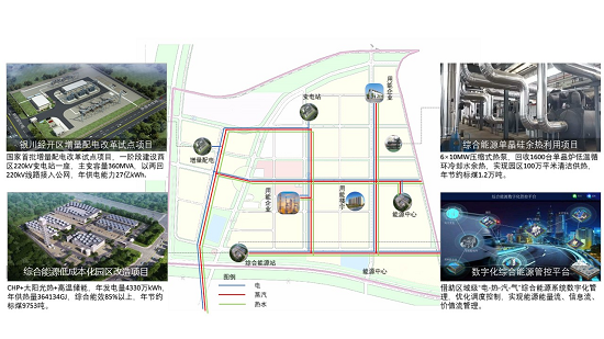 在宁夏银川,中国节能打造了覆盖供电区域5.7平方公里,供热区域5平方公里,年供电27亿千瓦时的综合能源项目,为银川经开区提供冷、热、蒸汽和电力等综合能源。中国节能利用自主研发的数字化综合能源服务平台,实现园区用户冷、热、水、电、气等多种能源的综合管理及各类供能设备的优化调度,最终将园区打造成“综合、智能、安全、创新、低碳、节能”的综合能源示范工业园区,有效推进能源生产和消费革命,构建了清洁低碳、安全高效的能源体系。
