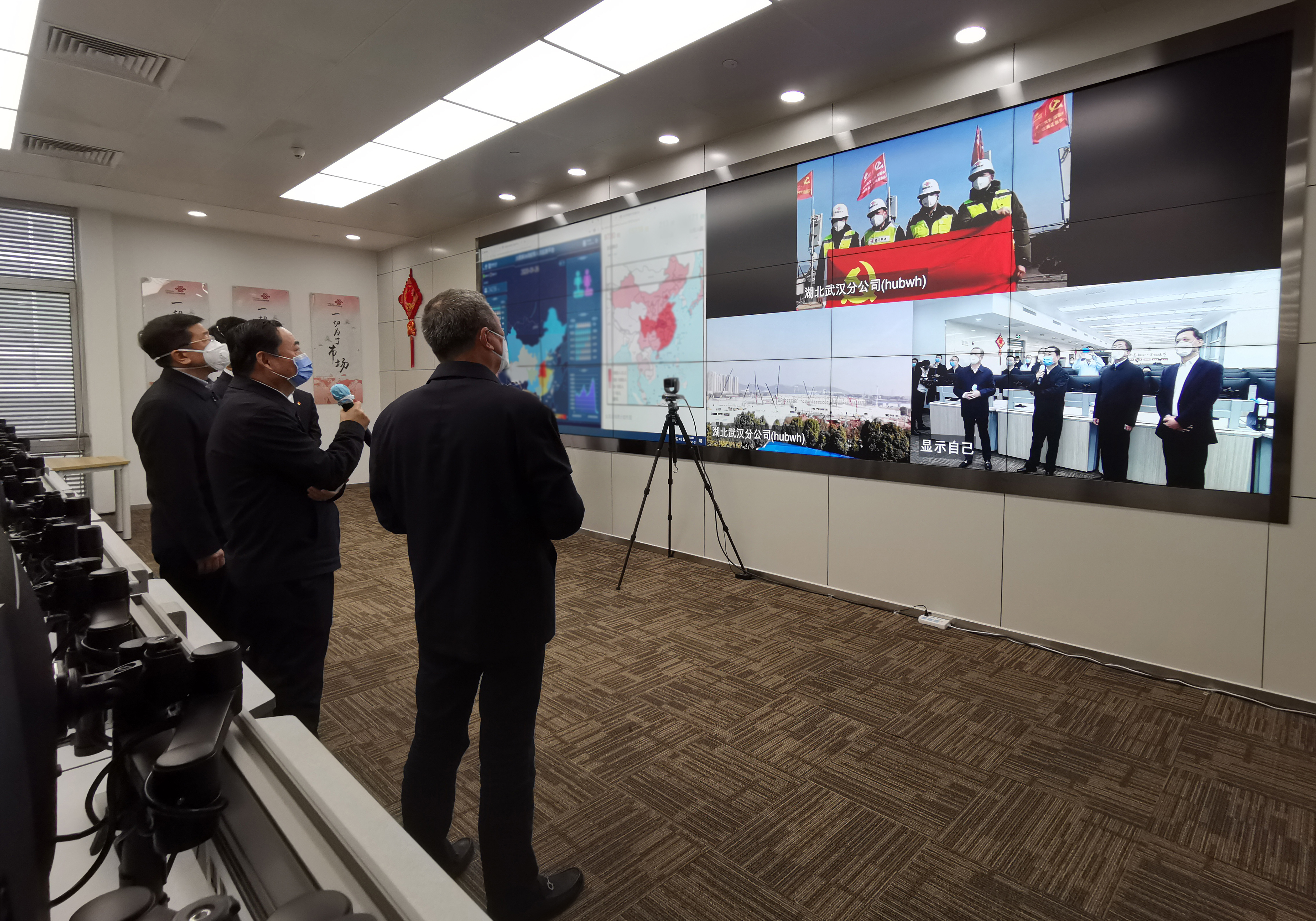 郝鹏来到中国电信、中国联通、中国移动等企业总部,分别与3家企业的湖北公司视频连线,详细了解疫情防控遇到哪些难题、需要什么支持等,当了解到3家企业用36个小时实现了火神山、雷神山专门医院通信全覆盖时,郝鹏给大家“点赞”。郝鹏强调,要充分发挥基层党组织战斗堡垒作用和党员干部的先锋模范作用,做到守土有责、守土担责、守土尽责,切实保障地方政府、医疗卫生机构等的通信网络高效畅通。要强化责任担当,主动作为,进一步丰富便民惠民服务,利用大数据、云服务等技术助力疫情防控。