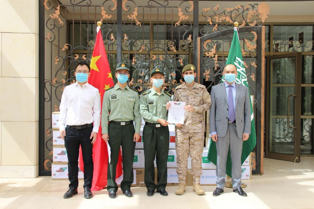 With the escalation of the epidemic situation in Saudi Arabia, China Geo-Engineering Corporation Middle East Branch collected emergency materials via multiple channels, including providing coronavirus test kits for the Contact Office of Chinese Companies in the Kingdom of Saudi Arabia, in an effort to contribute to the virus test work in the Middle Eastern country. Moreover, the branch donated a batch of protective gloves to the government of Saudi Arabia via the Chinese Embassy in the country. Those moves reflect the Chinese company’s responsibility and determination to repay kindness with kindness and share weal and woe with the people of Saudi Arabia. This picture shows Zhang Wenjun (first right), CEO of the Middle East branch, at the donation ceremony.