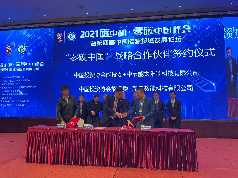 The 2021 “Zero-Carbon China” Summit on Carbon Neutrality and the Fourth China Energy Investment and Development Forum were recently held in Beijing. Yang Zhongxu, vice president of CECEP Solar Energy Co., Ltd., was invited to attend the event, and signed on behalf of his company a strategic cooperation framework agreement with the Energy Investment Committee of the Investment Association of China (IAC) on building a “Zero-Carbon China.”