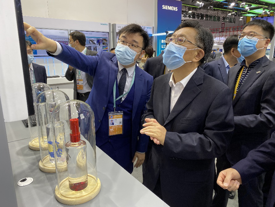 Song Xin visits the booth of Siemens at the 3rd CIIE.