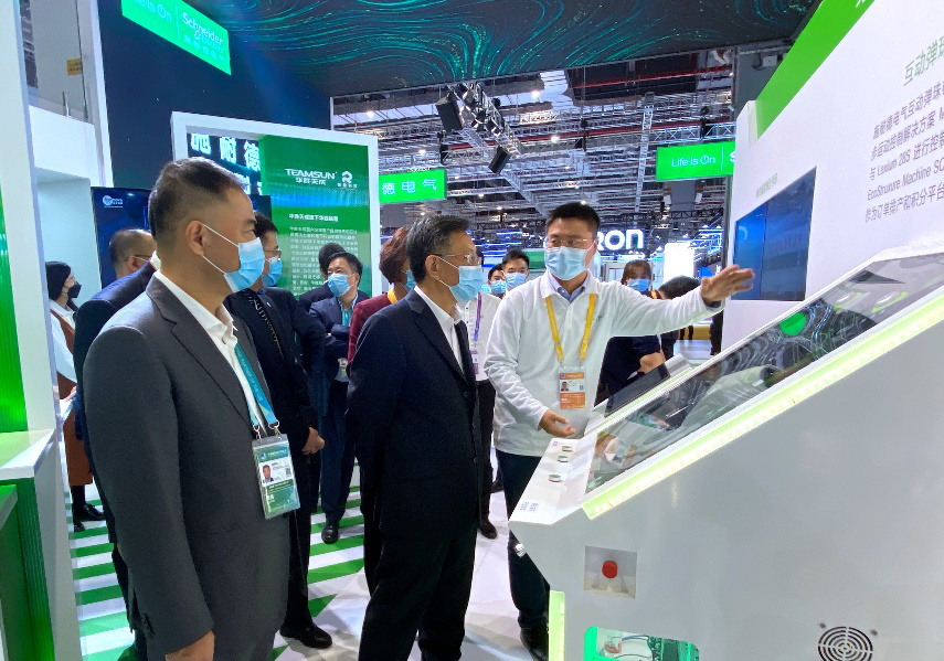 Song Xin visits the booth of Schneider at the 3rd CIIE.