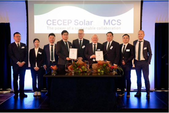 Recently, the launching ceremony of solar energy cooperation between CECEP Solar Zhenjiang and the local Dutch company MCS BV was successfully held in the city center of Stadskanaal in the north of the Netherlands. Representatives from both sides signed the document on site. Chairperson of All Dutch Chinese Association, chairperson of the local largest chamber of commerce in the canal area, and chairperson of Chinese Kredietunie Nederland (CKN) attended the ceremony and delivered speeches.