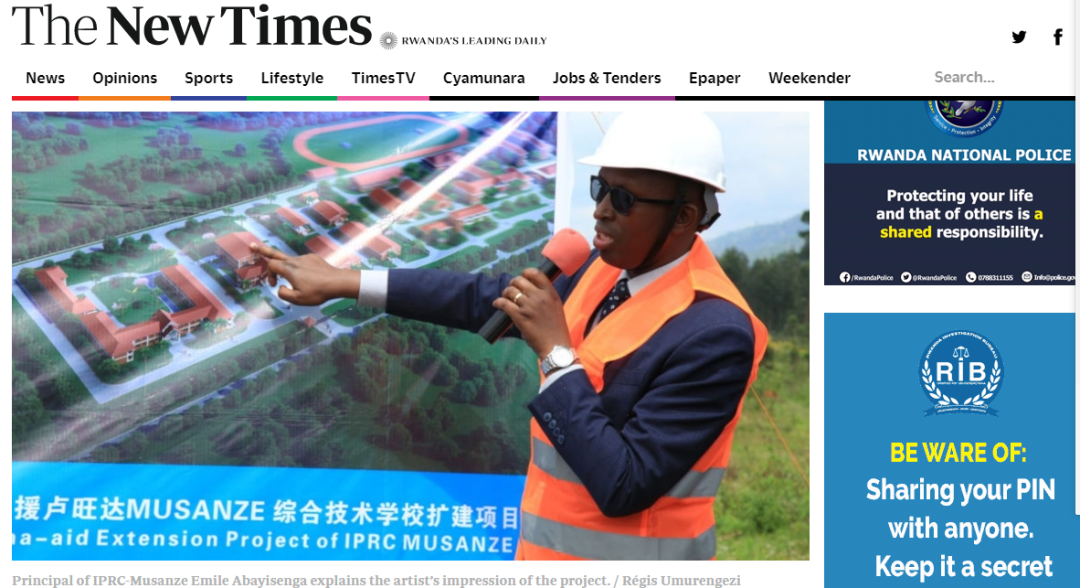 The project employs a number of local workers and provides precious opportunities of internship and training for students of the IPRC Musanze, which could greatly improve the vocational skills of local students. When completed, the expanded school will become the biggest vocational school in Rwanda, allow more young people to grow into highly skilled talents, and help Rwanda implement its national strategies of high-level vocational education.