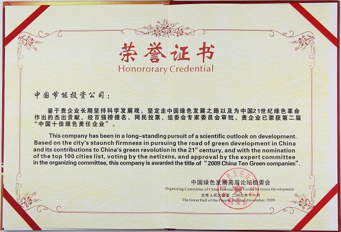Ten Best Chinese Green and Responsible Enterprises (2nd China International Forum on Green Development)